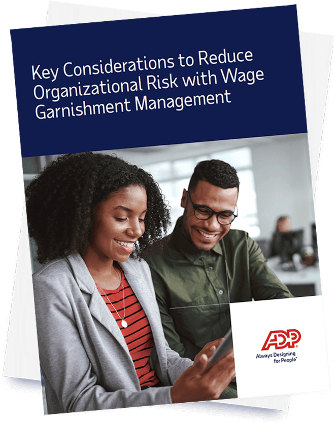 Download our guidebook for more information on how ADP SmartCompliance provides the comprehensive garnishment order processing and disbursement support you need to reduce your administrative burden, improve compliance and mitigate the risk of costly liability.