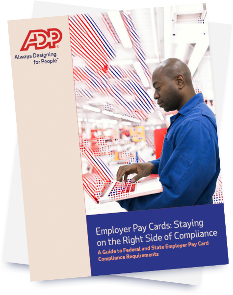 For more information about the opportunities presented by paycards and how to address compliance challenges, download ADP’s guide, Employer Paycards: Staying on the Right Side of Compliance.