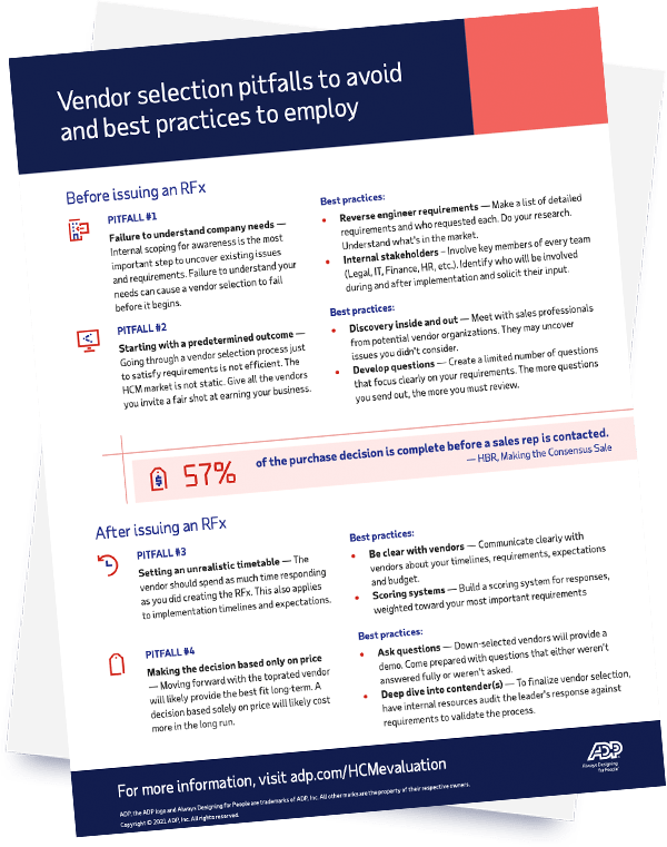 For more potential pitfalls that can occur when selecting an HCM vendor and best practices for avoiding them, download our insight.