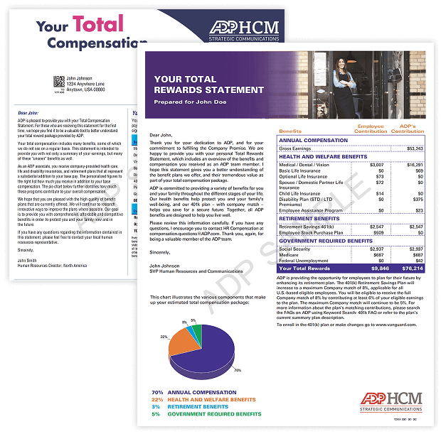 - Personalized total rewards statements that educate employees on the full value of their compensation and benefits