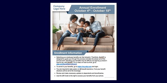 When employees understand their benefit plan options, they’re better able to make informed personal and financial choices. ADP’s strategic communication services can help you educate and engage employees with useful communications throughout the entire year, not just the annual enrollment period. We’ll also help you determine the appropriate message and the best way to deliver it.