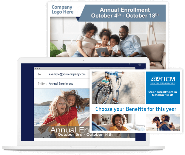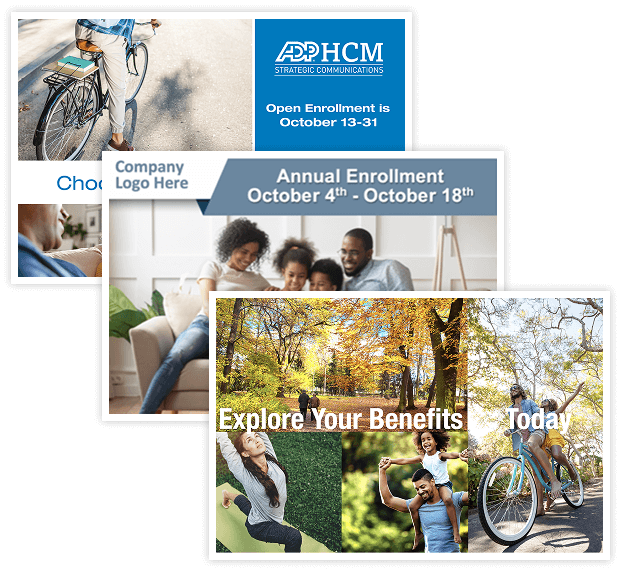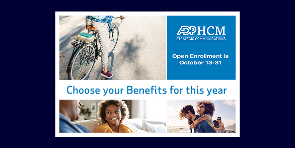 To improve benefits participation rates, you need an HR and benefits brand that has widespread recognition within your organization. ADP’s strategic communication services can help you achieve this level of awareness and engage employees. We provide creative services and graphic design, campaign management, and communication strategies that leverage a mix of the following: