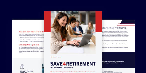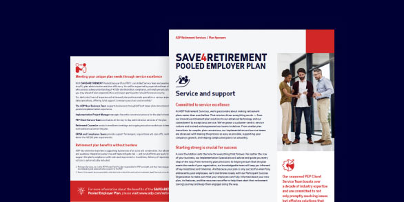 Confidently offer your clients ADP's SAVE4RETIREMENT Pooled Employer Plan that minimizes sponsor and fiduciary responsibilities.